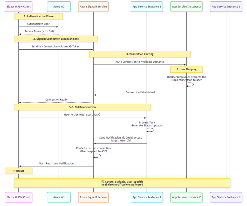 - This architecture guarantees secure, scalable, and user-specific real-time notifications for your Blazor WebAssembly application.